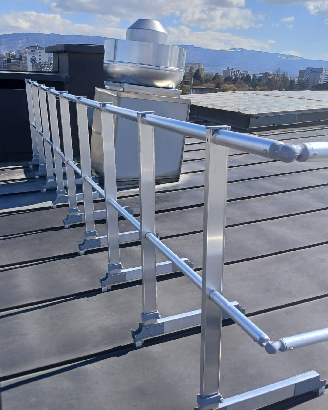 Nous avons récemment réalisé la pose de 40 mètres linéaires de garde-corps sur toiture à joint debout en cuivre.