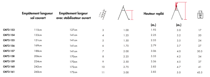 • Marches alu striées antidérapantes (largeur : 100 mm).